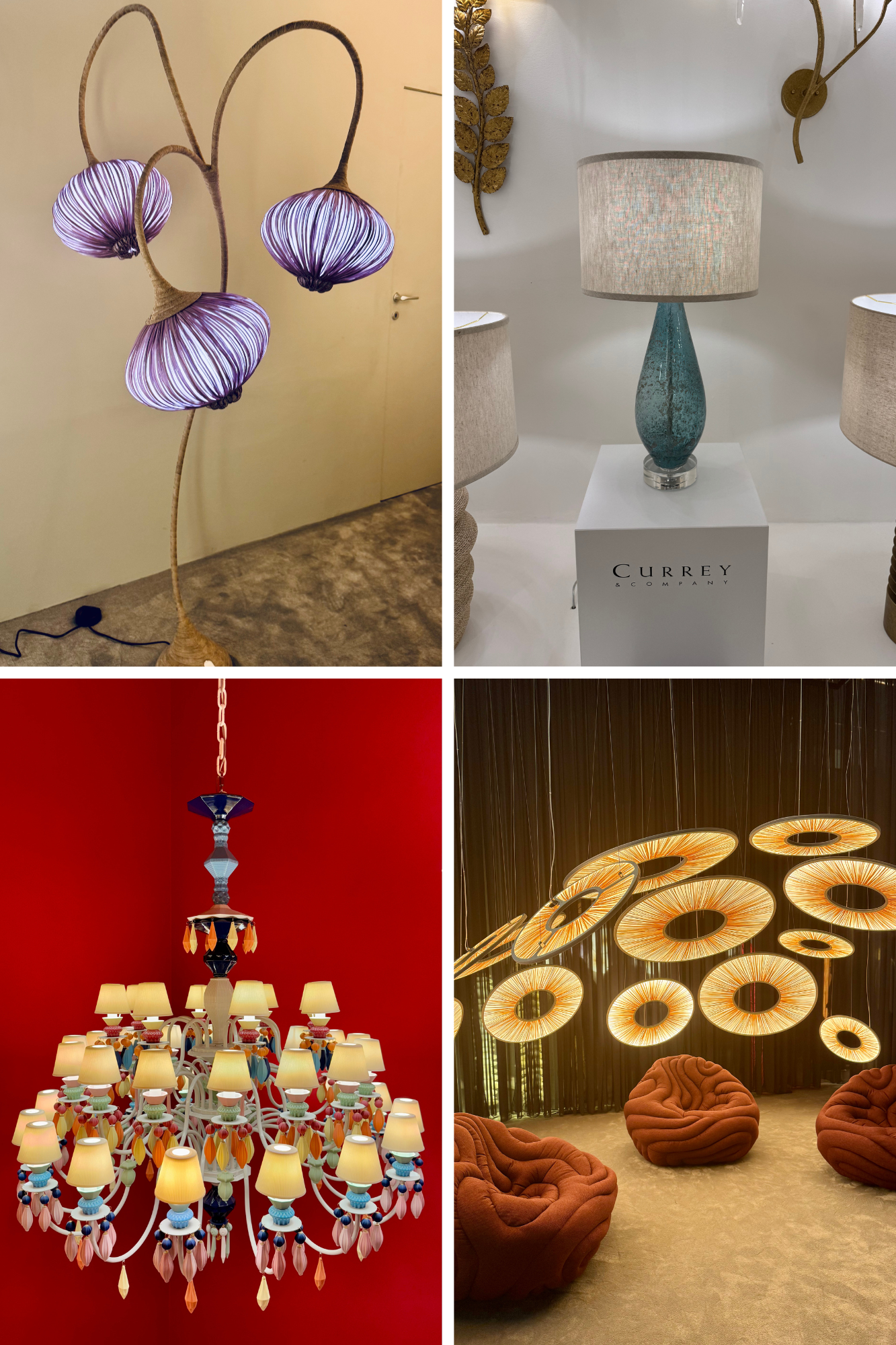 Amik igazán megdobogtatták a szívünket, azok a textillel borított világítótestek voltak. Lágy fények, melegséget árasztó anyagok, különleges hangulat – ez az a világ, amit mi is szeretnénk képviselni. Volt szerencsénk testközelből látni néhány olyan darabot, amelyeknél a textil nem csupán borítás, hanem karakterformáló elem: árnyékot vet és sejtelmessé teszi a fényt.